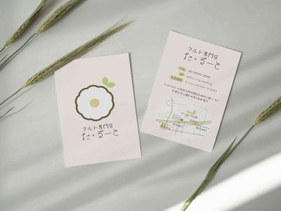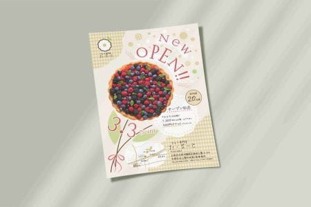 今回の題材は新規オープンのタルト屋さんです🍰最初に制作したチラシは町の小さなタルト屋さんのようなデザインでしたが、チラシに使用するため制作したロゴの雰囲気がとてもよかったのでその雰囲気に合わせてみましょう!と再チャレンジする事になりました。その結果、ナチュラルで可愛いらしいデザインに仕上げる事が出来ました!